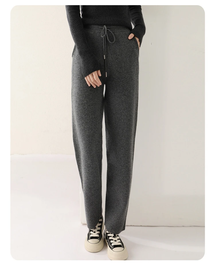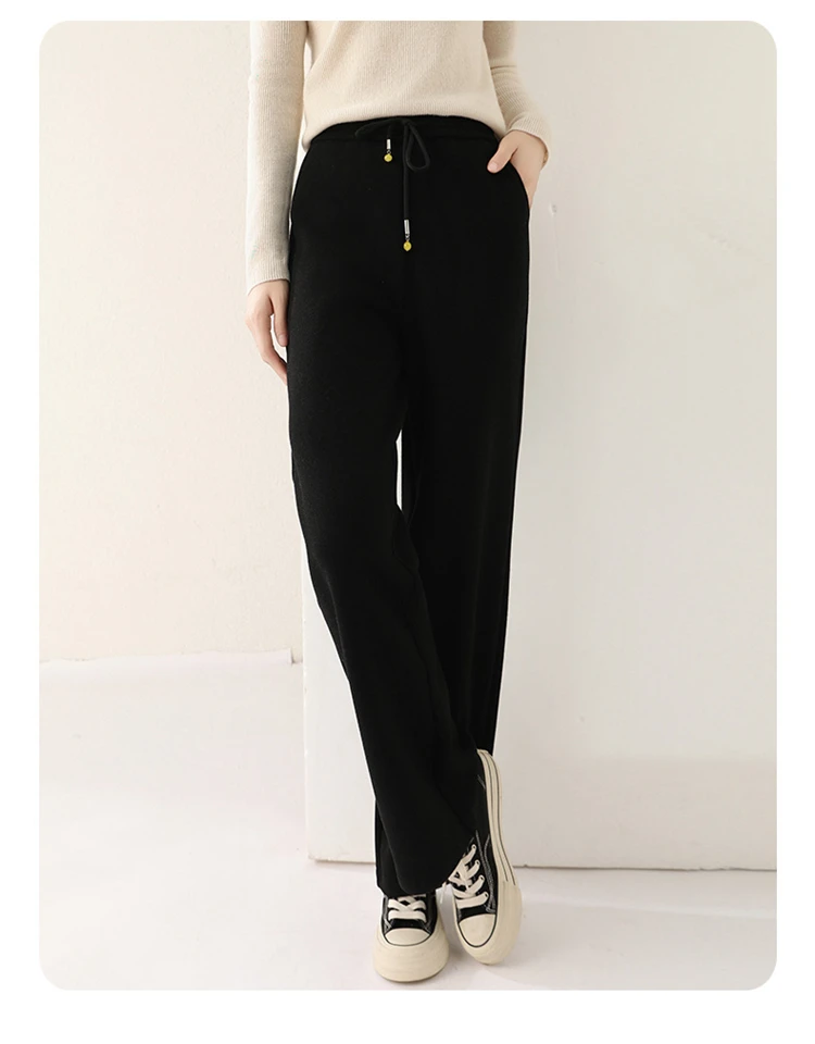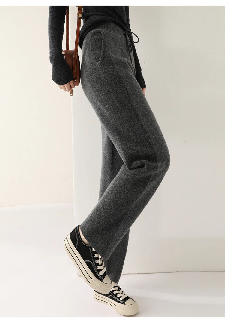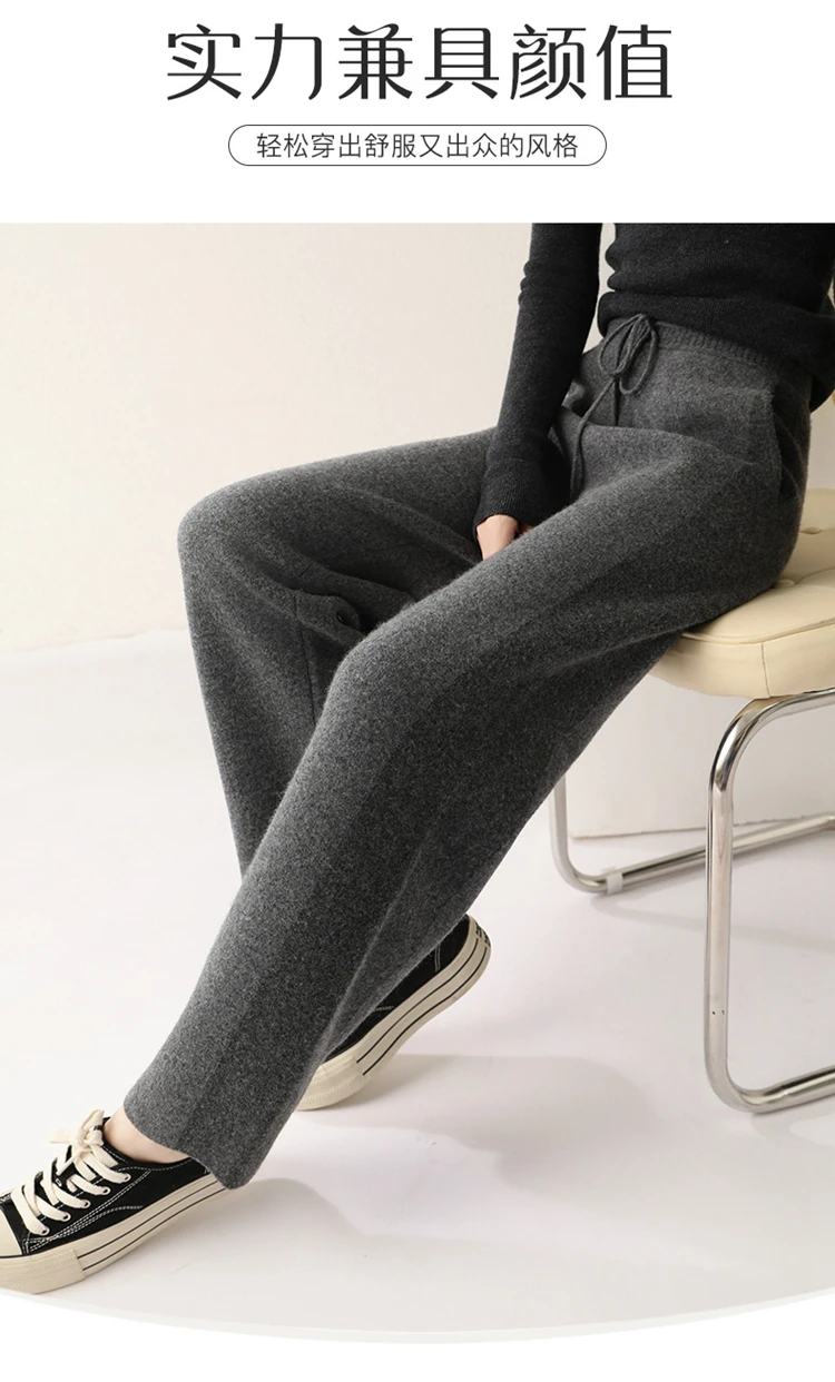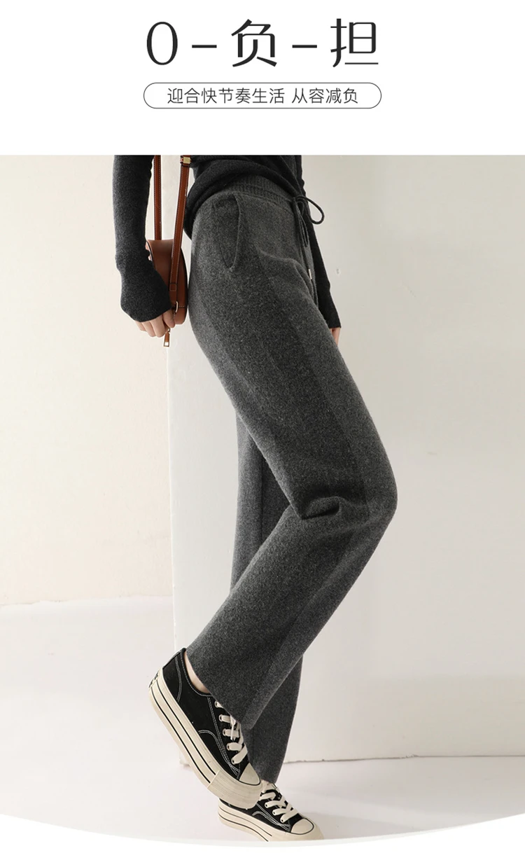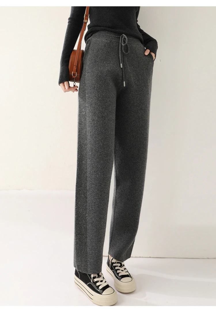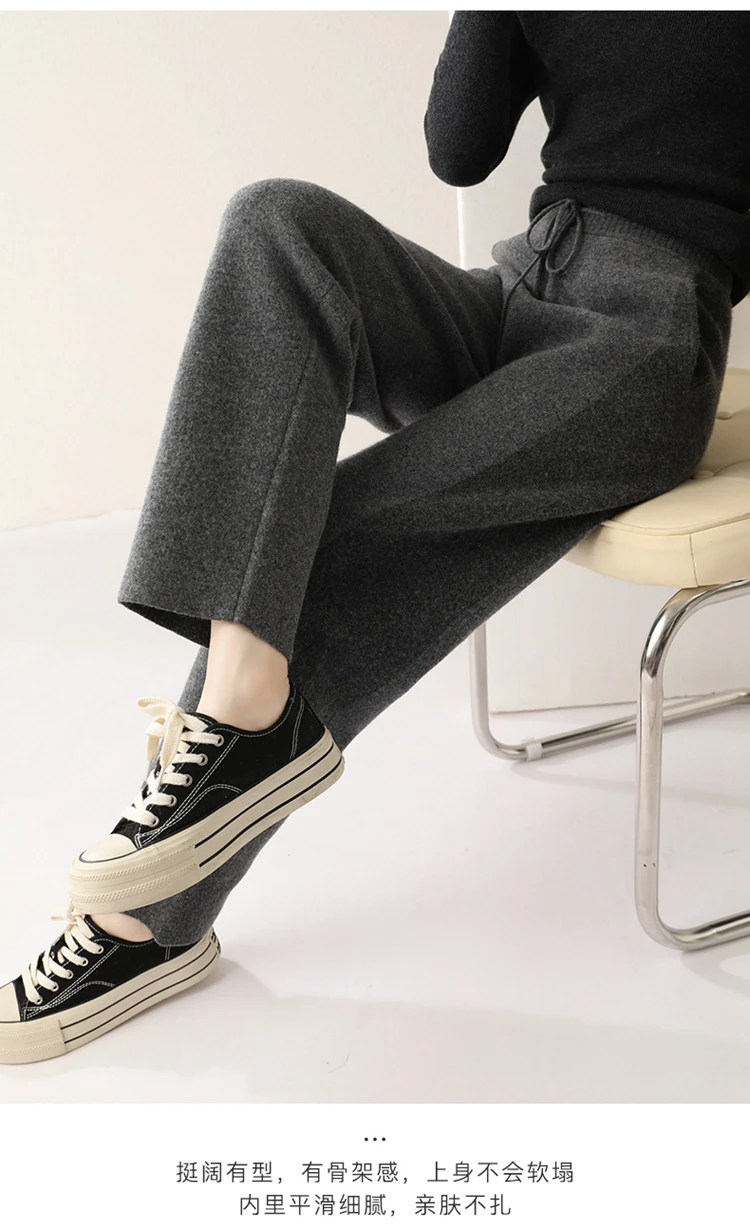 100% wool women's straight leg pants autumn and winter new knitted women's wool pants high waisted hot selling women's pants