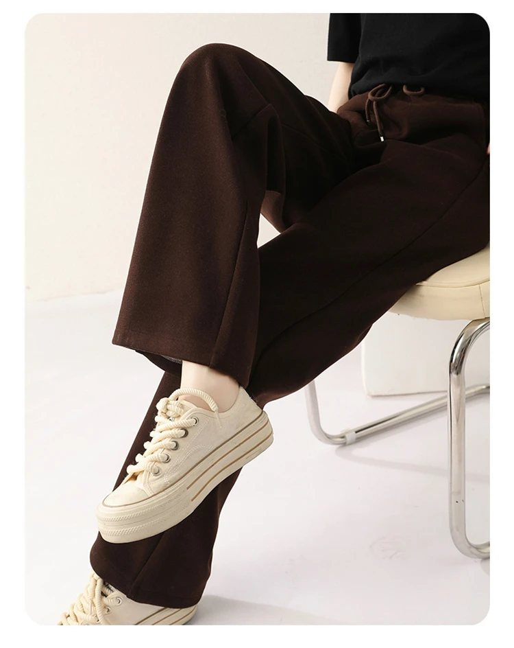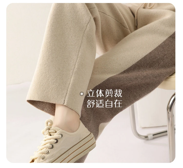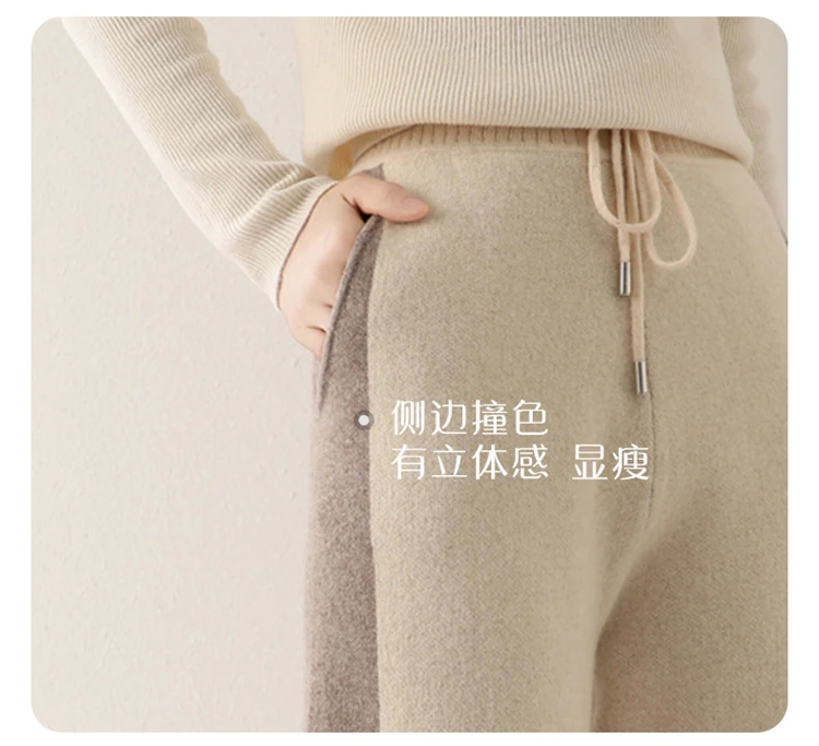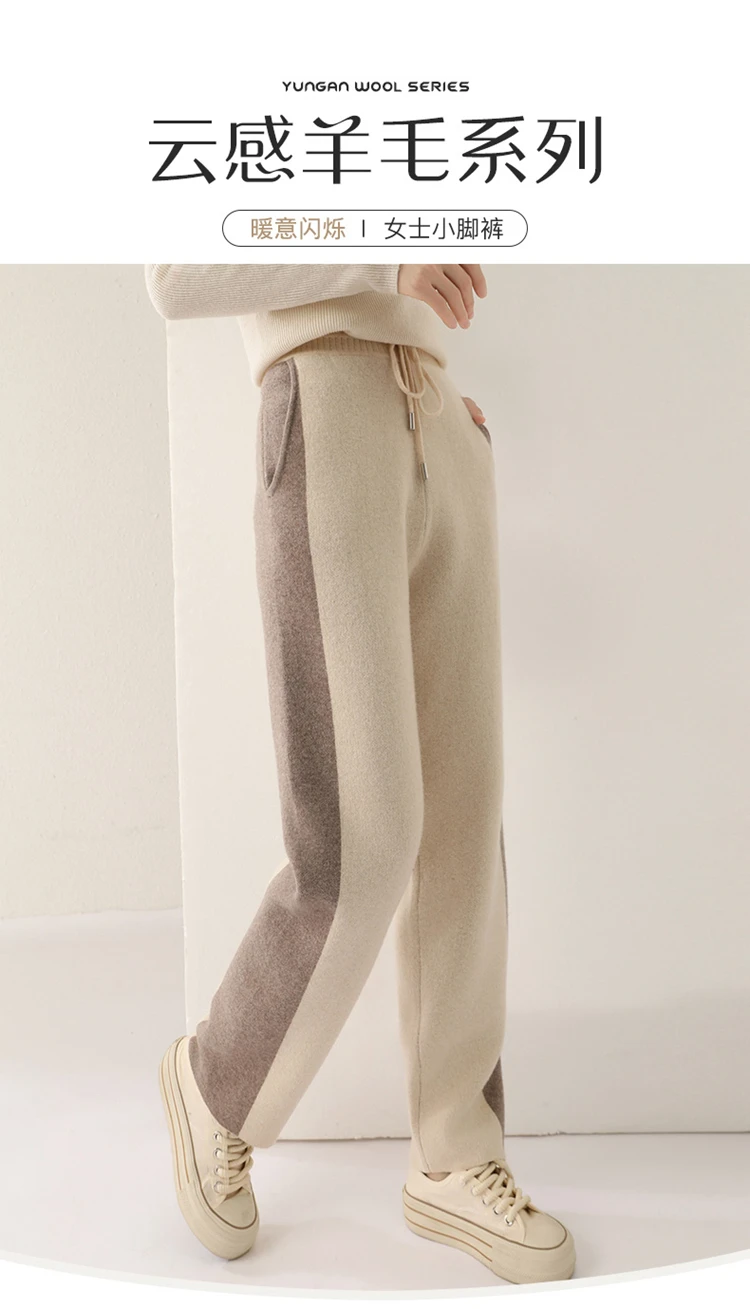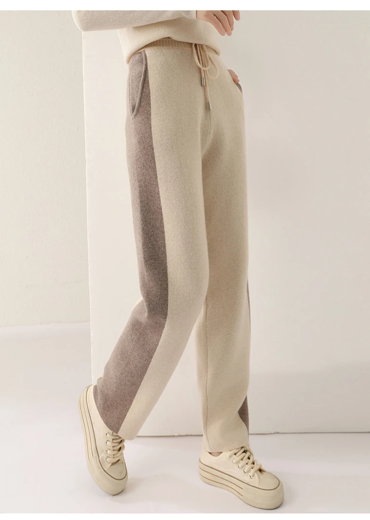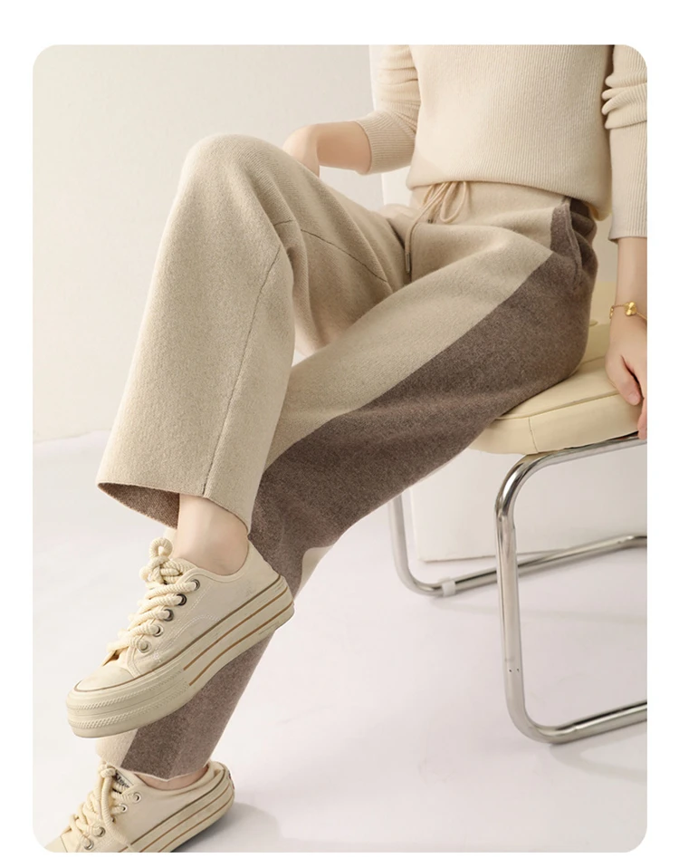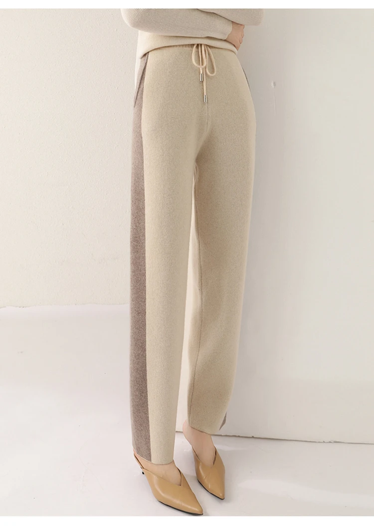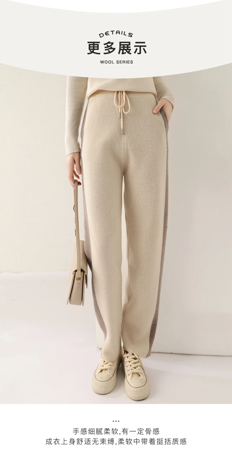 100% wool women's straight leg pants autumn and winter new knitted women's wool pants high waisted hot selling women's pants