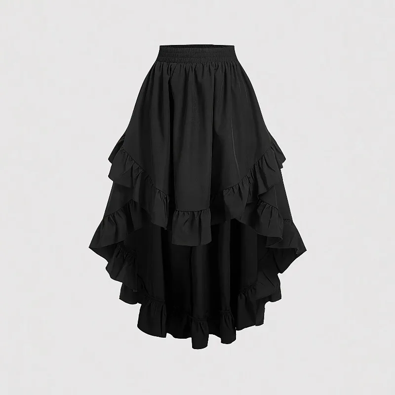 1pcs Women Fashion Versatile Elastic Waist Asymmetrical Ruffle Skirt Black Irregular Hem Flared Half Skirt