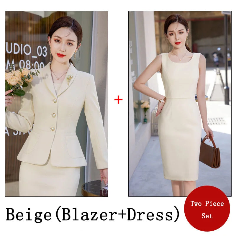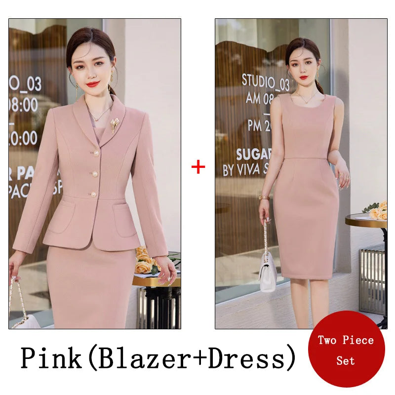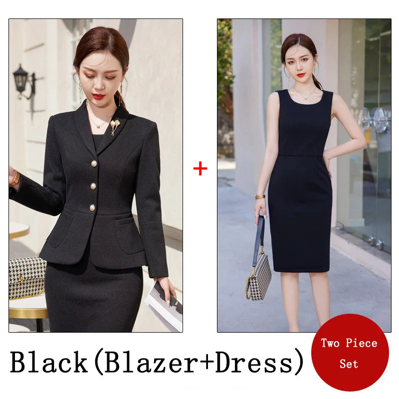 2023 New Autumn Work Wear Women's Suit Elegant Solid Blazer +Sleeveless Dress 2 Piece Set Single Breasted Jacket Plus Size S-5XL