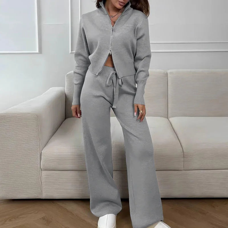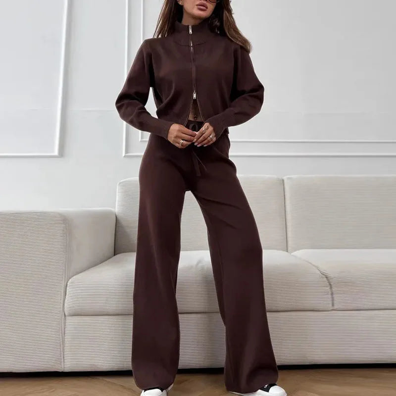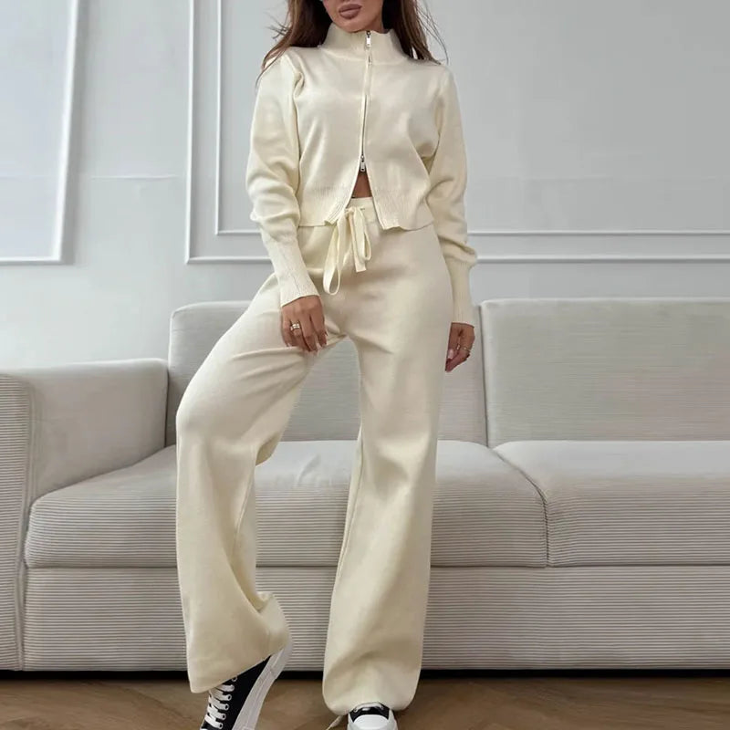 Autumn New Lady Commute Long Pants Outfit Fashion Zipper Long Sleeve Jacket And Pants Set Solid Color Slim Women Sportwear Suits