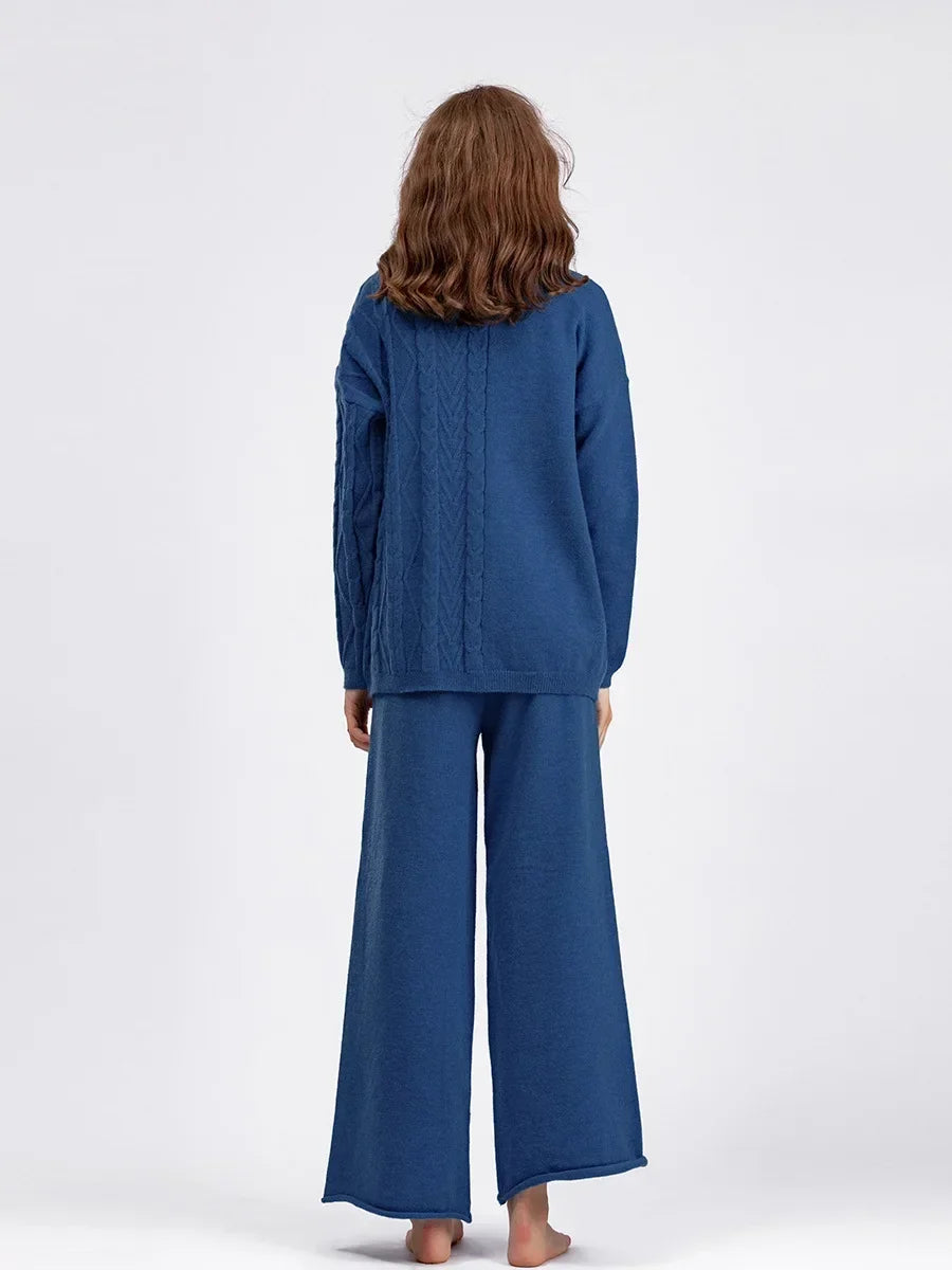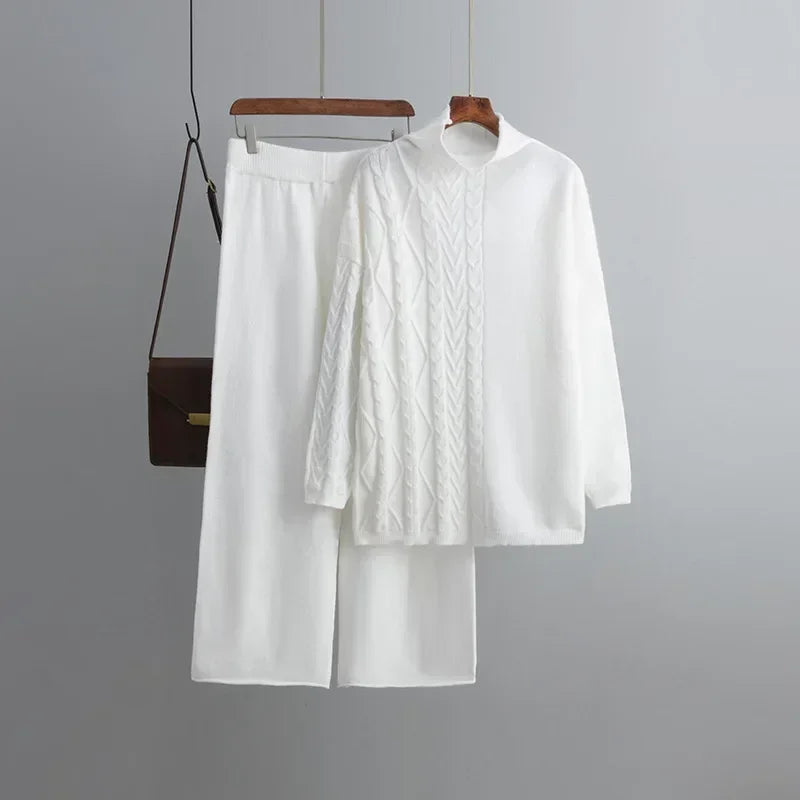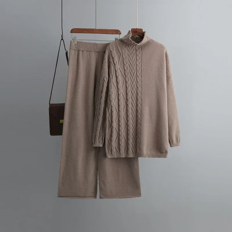Autumn Winter Warm Thicken Sweater for Women Tracksuit Knitted 2 Piece Set High Neck Knit Sweater and Elastic Trousers Suits