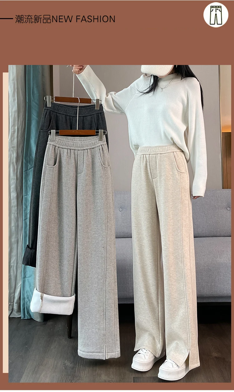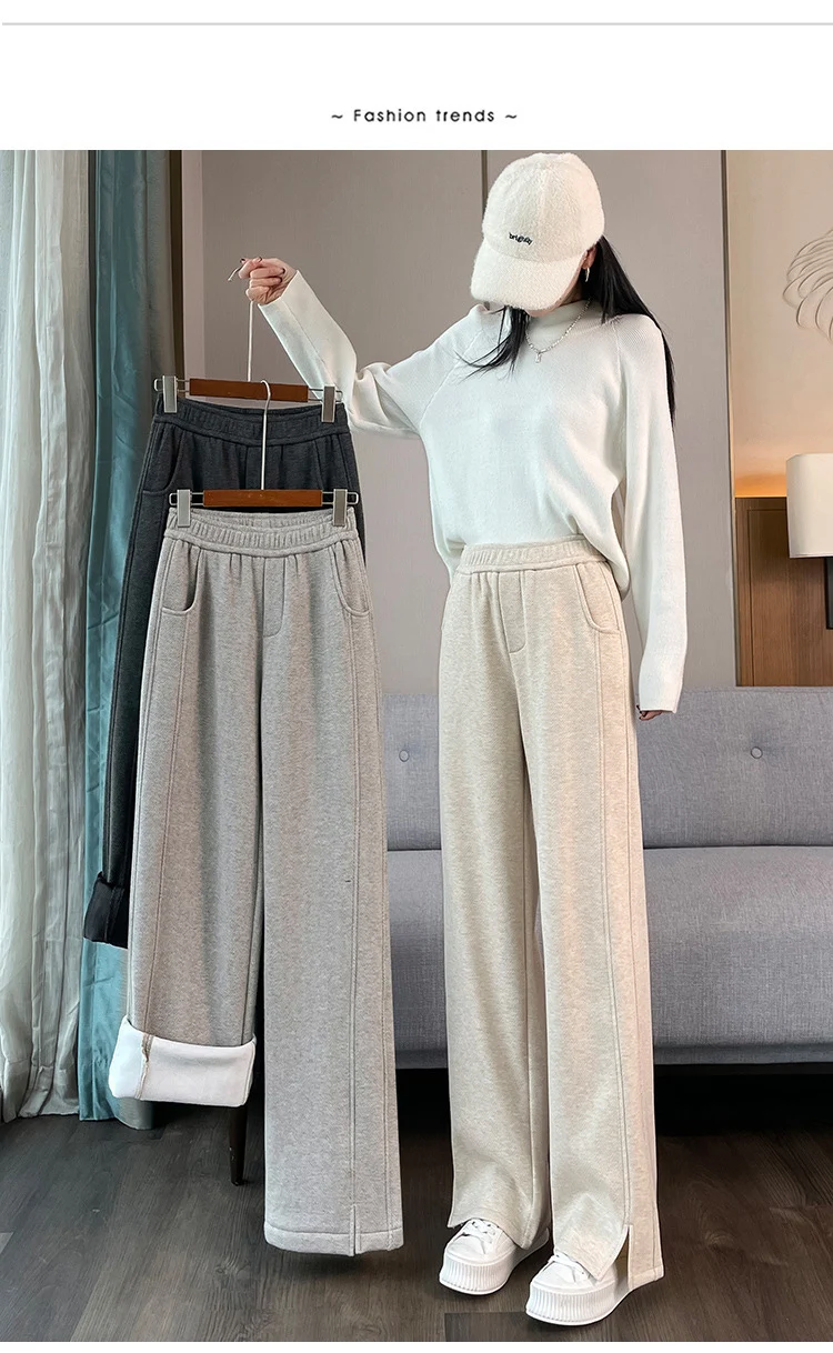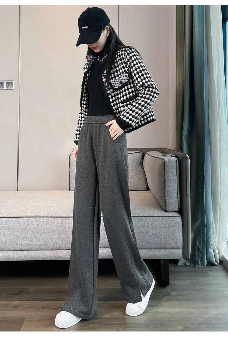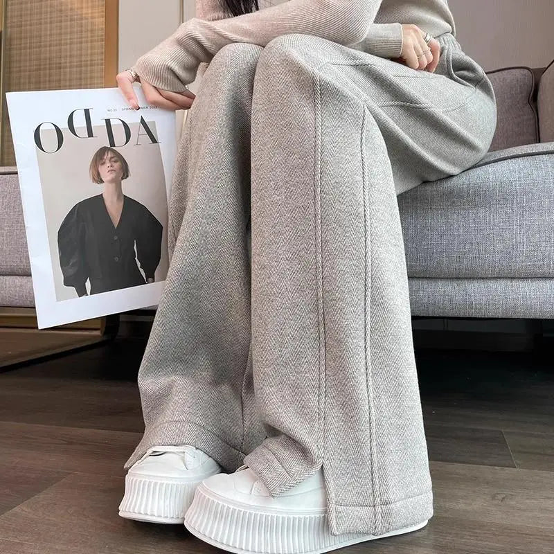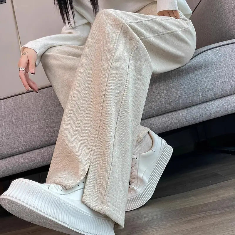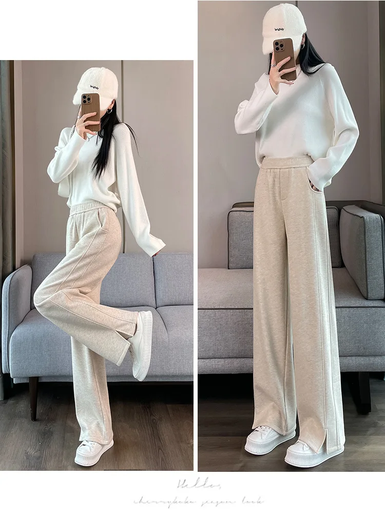 European apricot wide leg pants for women's autumn new high-end fashion plus size straight leg split casual banana pants