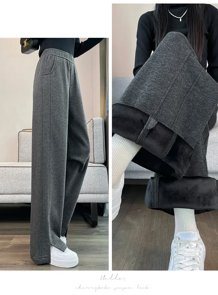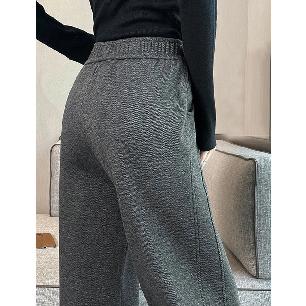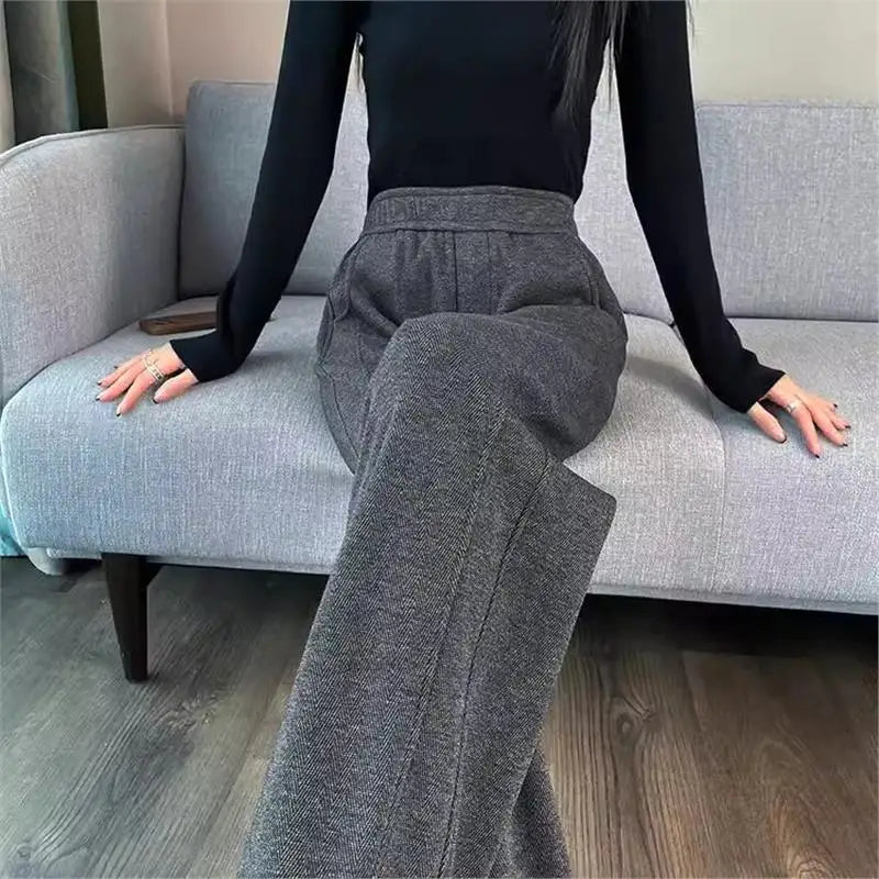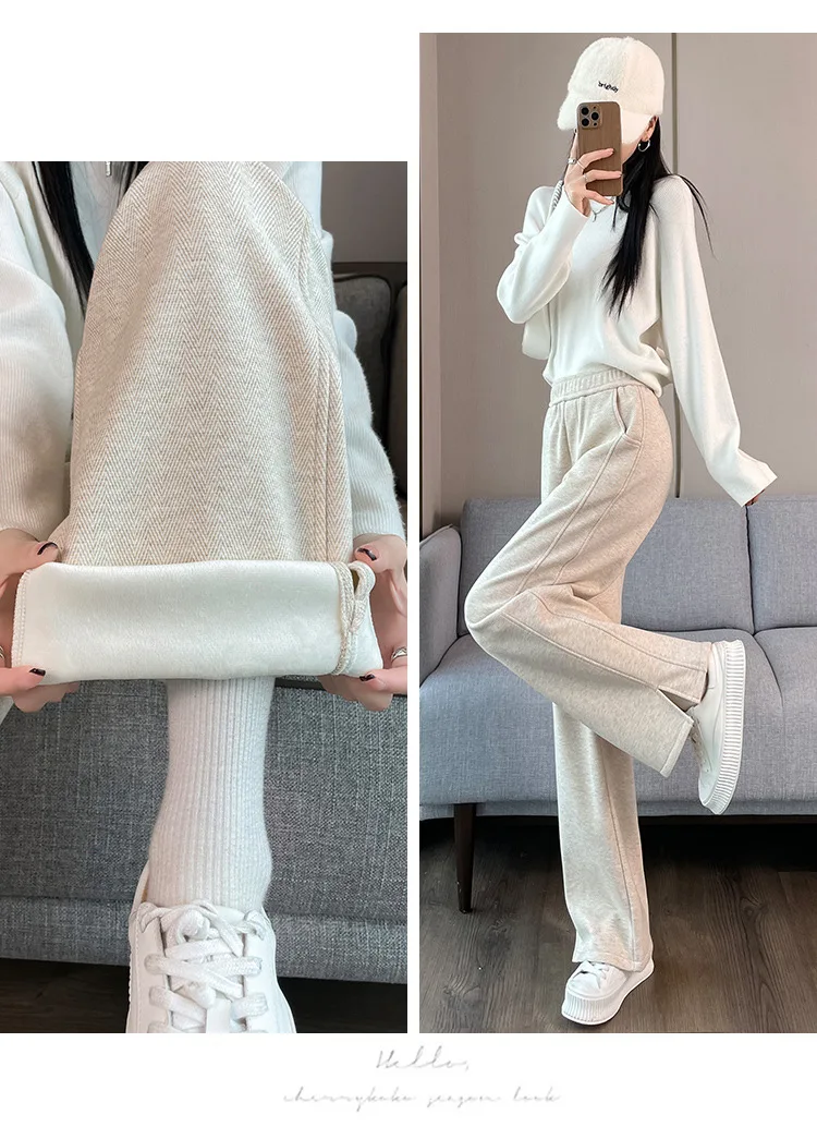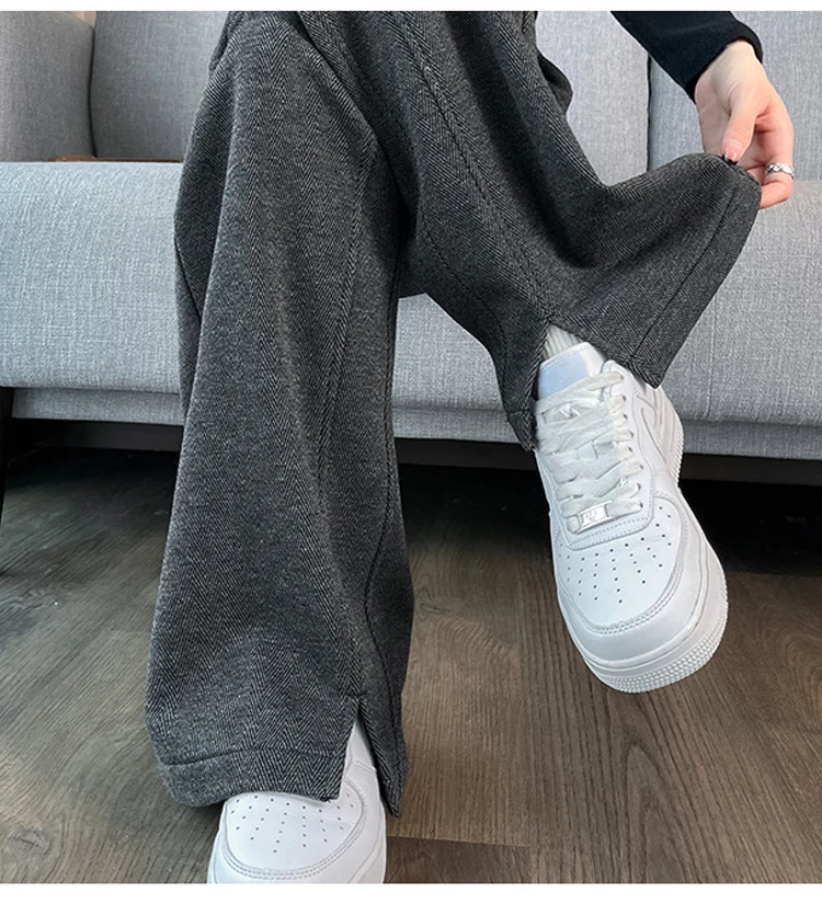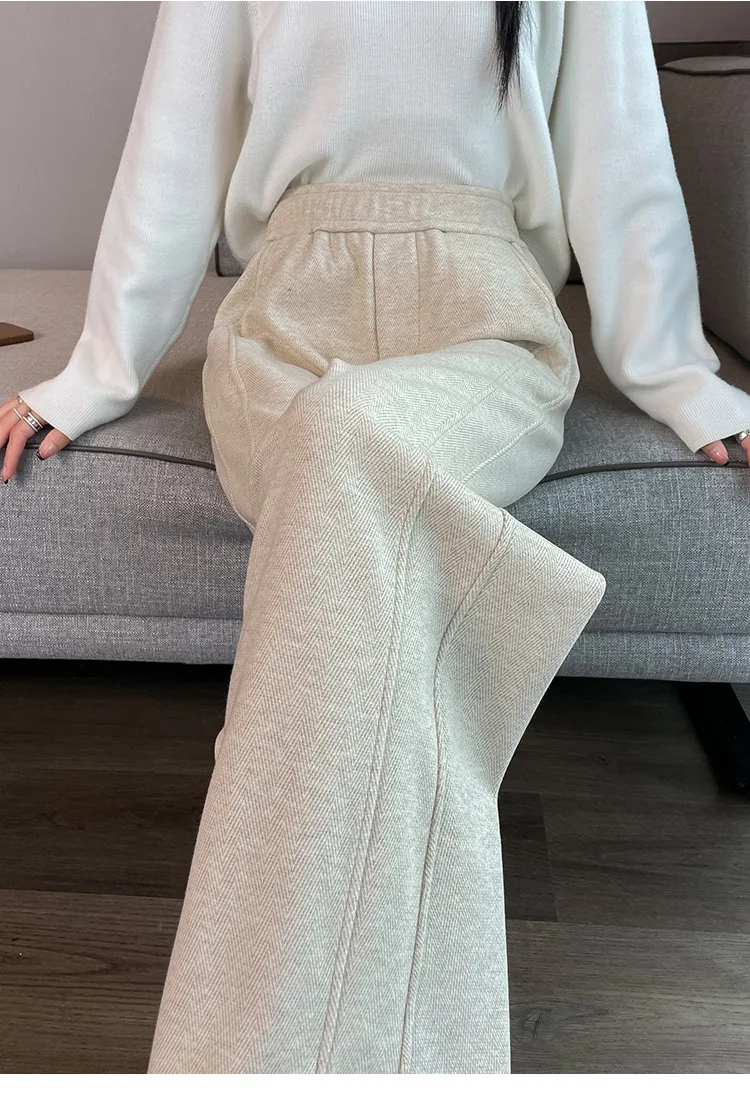 European apricot wide leg pants for women's autumn new high-end fashion plus size straight leg split casual banana pants