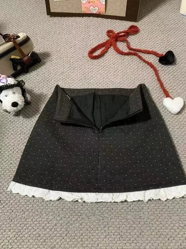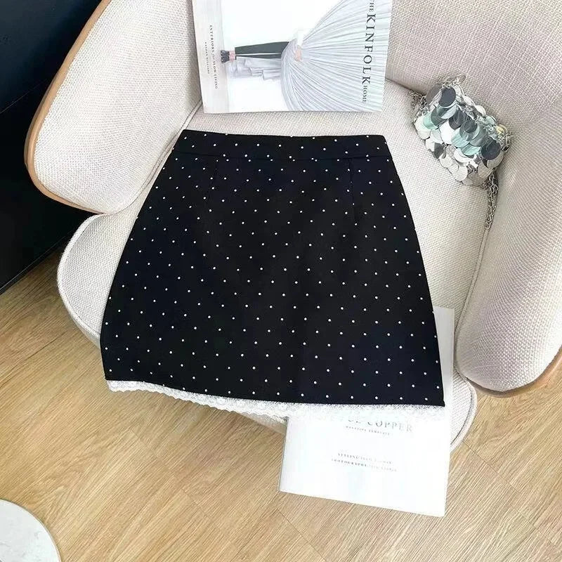 Korean Style High Waist Polka Dot Lace Half Skirt Women's Spring Summer New Anti-Light Slim A- Line Wrap Body Skirt