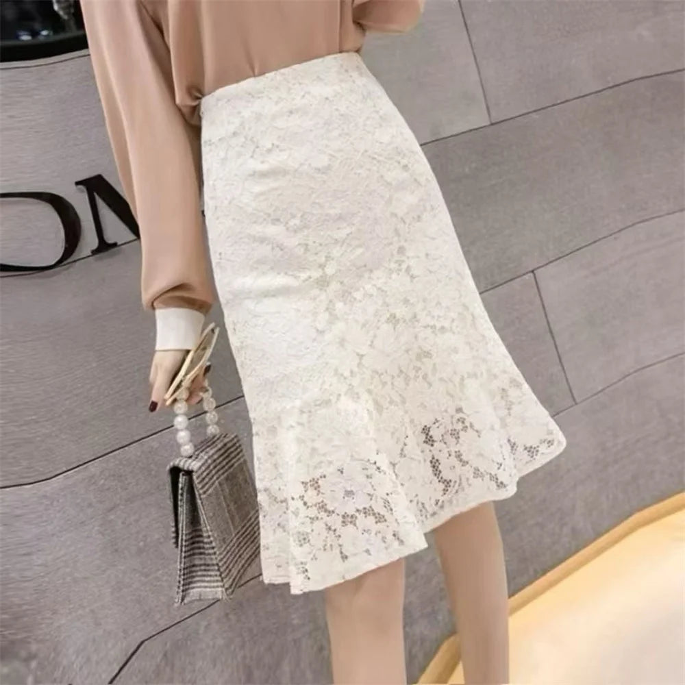 Lace Fishtail Women's Skirt 2025 Spring Summer New Female Mid-Length A-Line Pleated Package Hips Skirt Office Ladies One Step