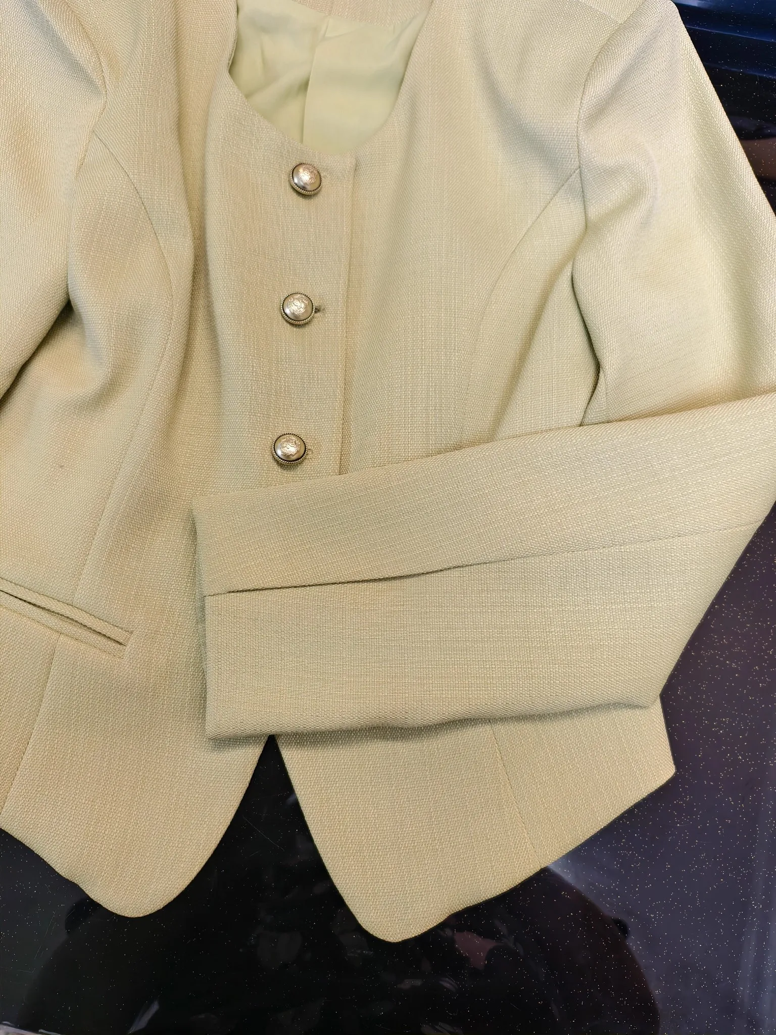 Featuring a single-breasted closure and chic O-neck, it exudes sophistication and professionalism.