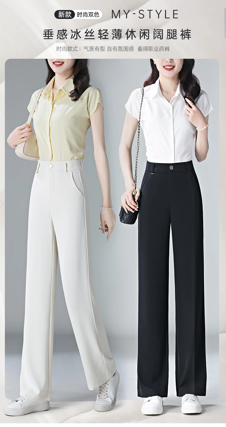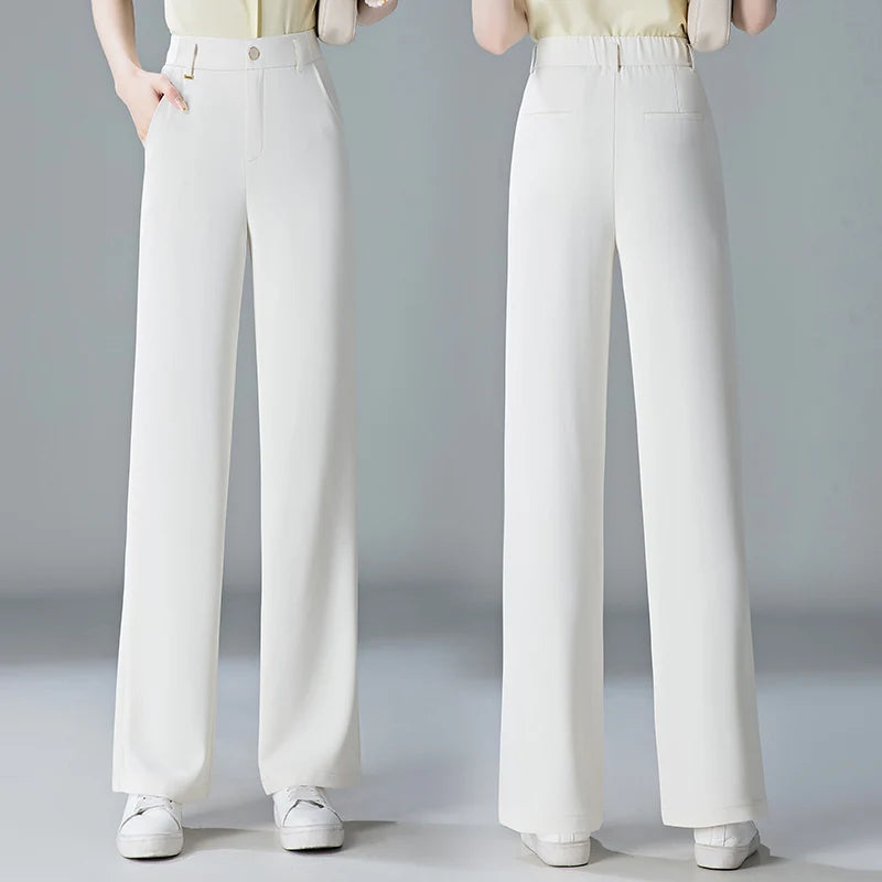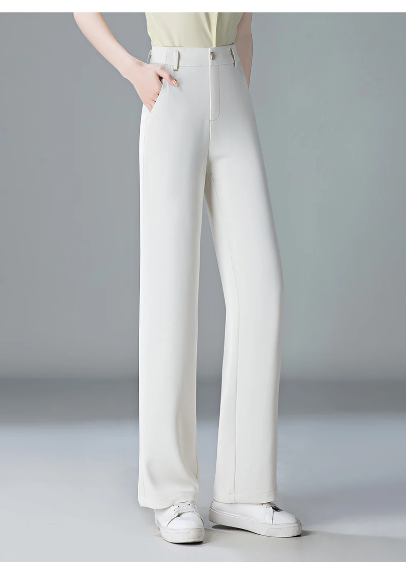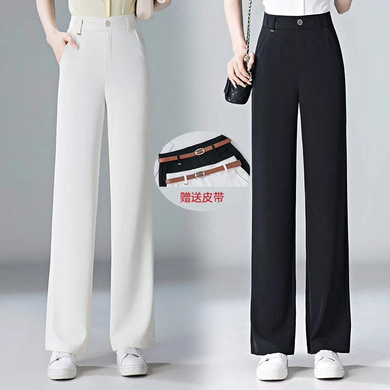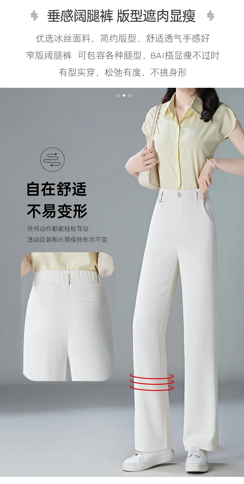 white Straight leg Pants Women's Summer Thin ice silk 2024 new high Waisted drape Slimming Loose Casual Straight cylinder Pants