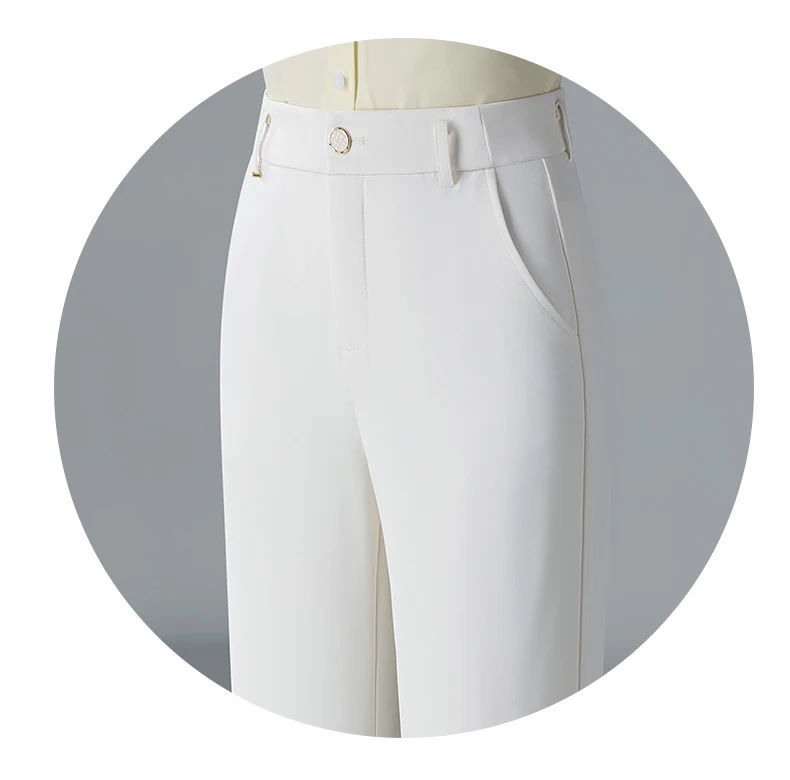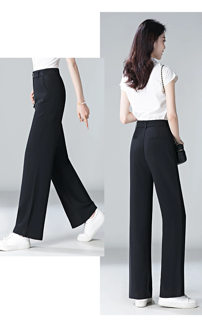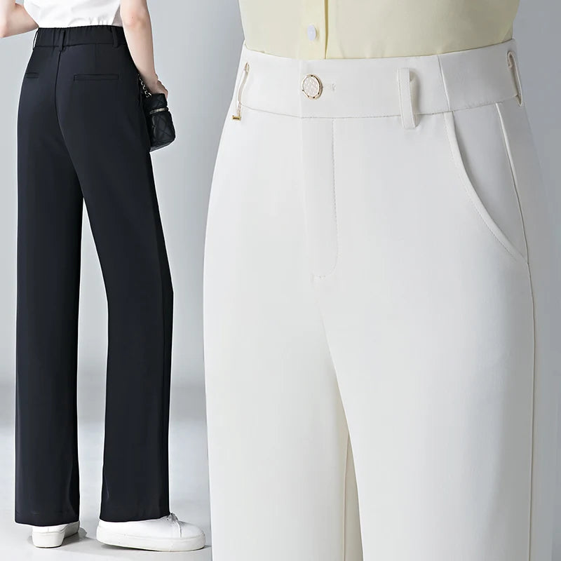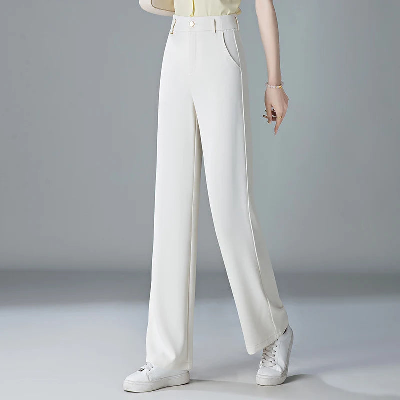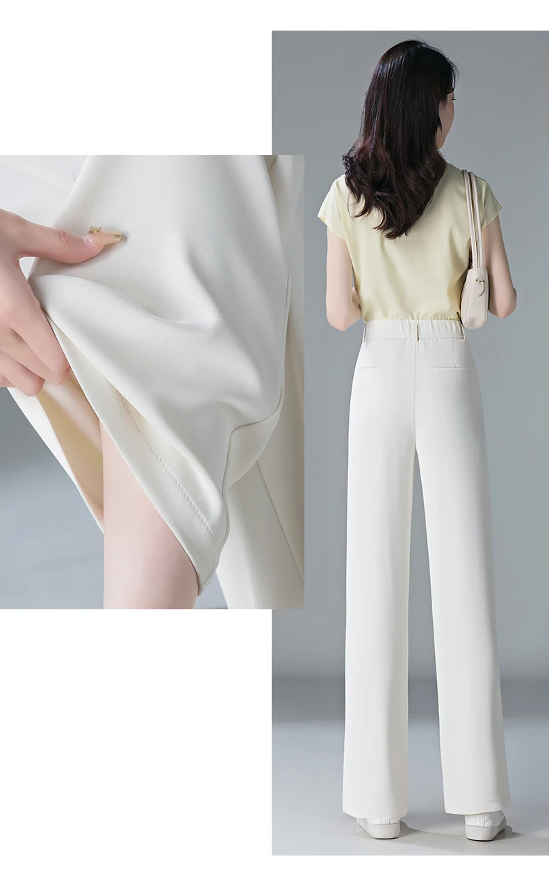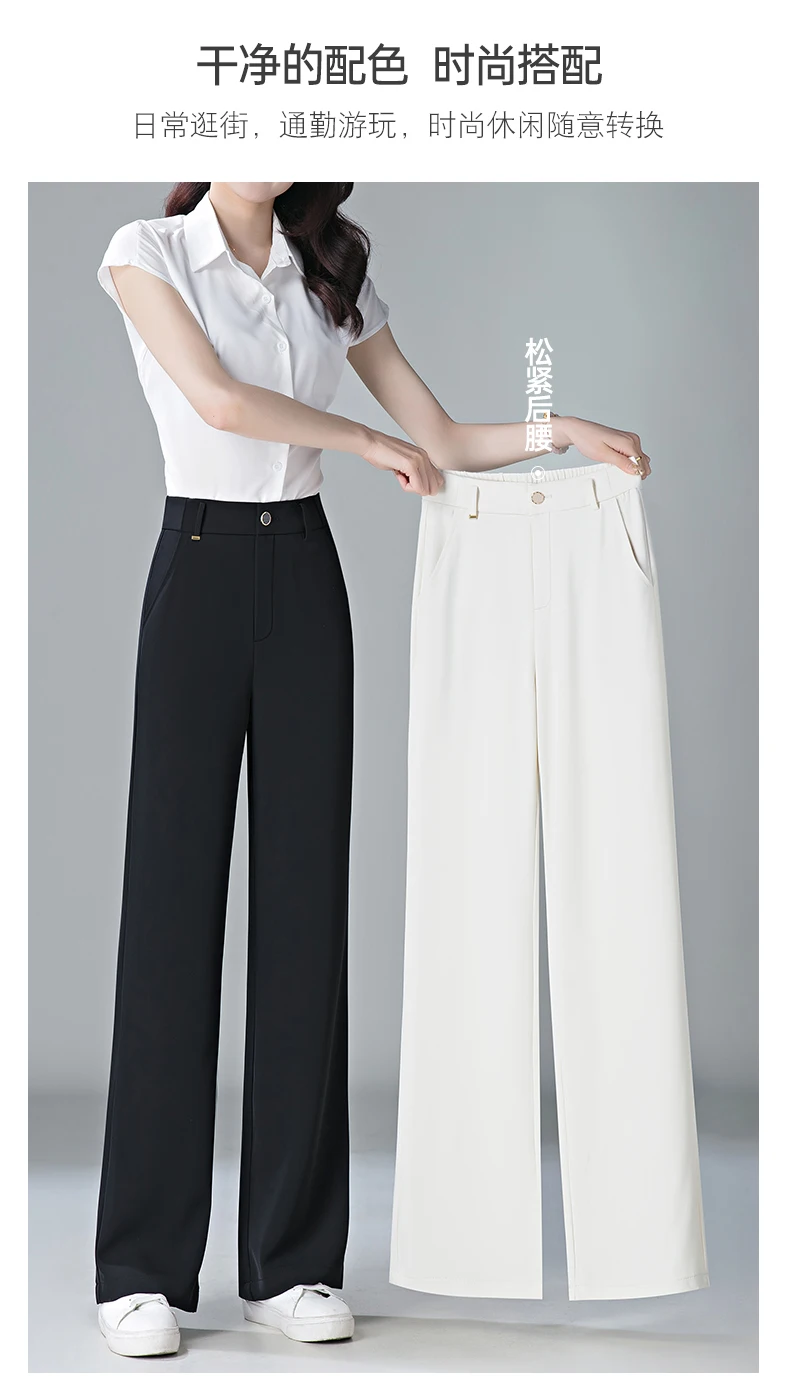 white Straight leg Pants Women's Summer Thin ice silk 2024 new high Waisted drape Slimming Loose Casual Straight cylinder Pants