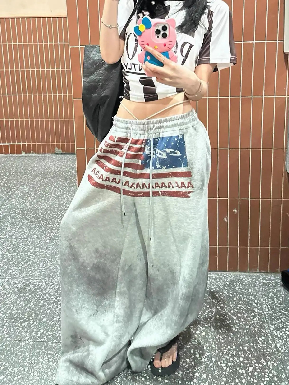 Y2k Baggy Sports Pants Men and Women Harajuku Retro Letter Printed Casual Pants American Gothic Fashion Low Waist Sports Pants